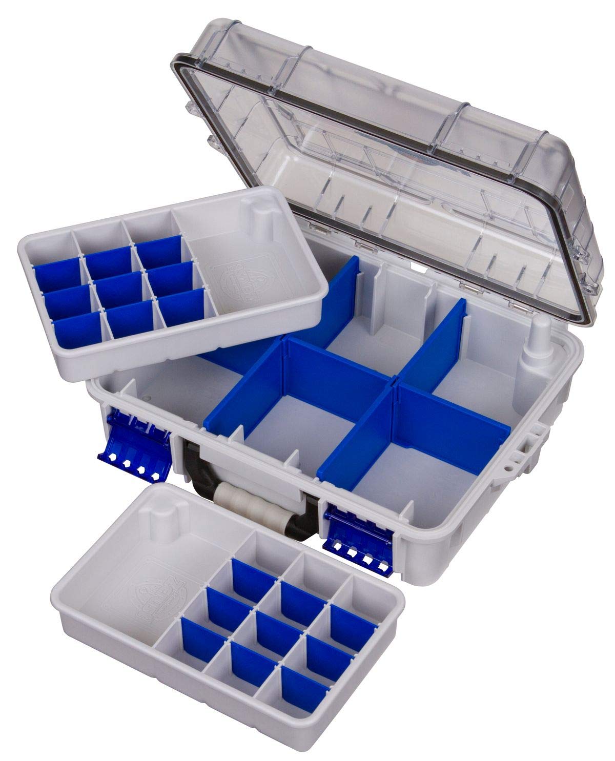 - WATERPROOF CONSTRUCTION: This tackle box has a durable, thick-wall construction and a 360-degree waterproof, airtight rubber gasket. The recessed, polycarbonate lid serves as a nearly indestructible work surface.
