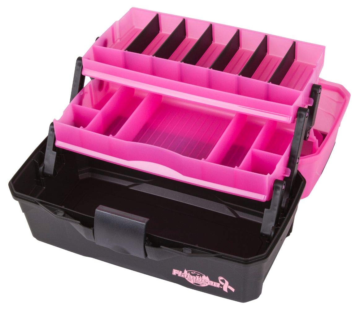 Flambeau Outdoors 6382FP 2-Tray Classic Tray Tackle Box, Portable Tackle Storage, Breast Cancer Support Edition - Frost Series Pink/Black